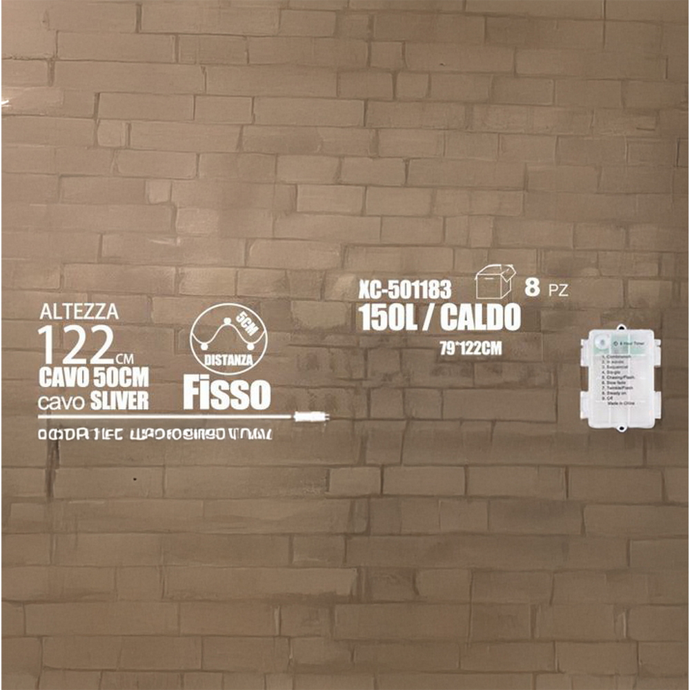 Questo straordinario albero è composto da 150 LED a luce fissa dalla calda tonalità bianco caldo, distribuiti in modo armonioso con una distanza di 5 cm tra l’uno e l’altro, su una struttura alta 122 cm. Ogni punto luce contribuisce a definire il profilo dell’albero e della stella posta in cima, creando un effetto visivo sorprendente e delicato. Alimentato da 3 batterie AA e dotato di un cavo di 50 cm, può essere facilmente installato ovunque, senza il bisogno di prese vicine o cavi antiestetici.