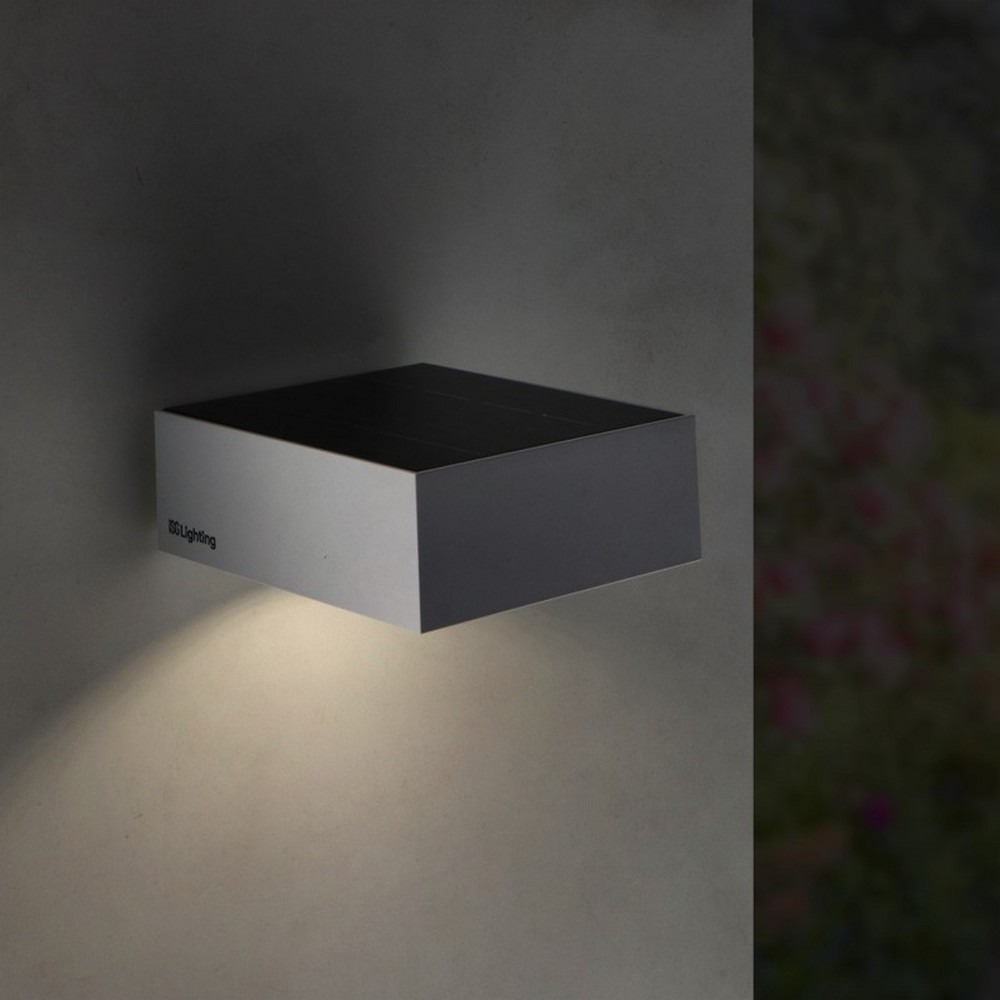 Applique Led da parete Bin 2W Bianco con pannello solare IP65 Bianco neutro 4000K con sensore crepuscolare e di movimento iSG Lighting