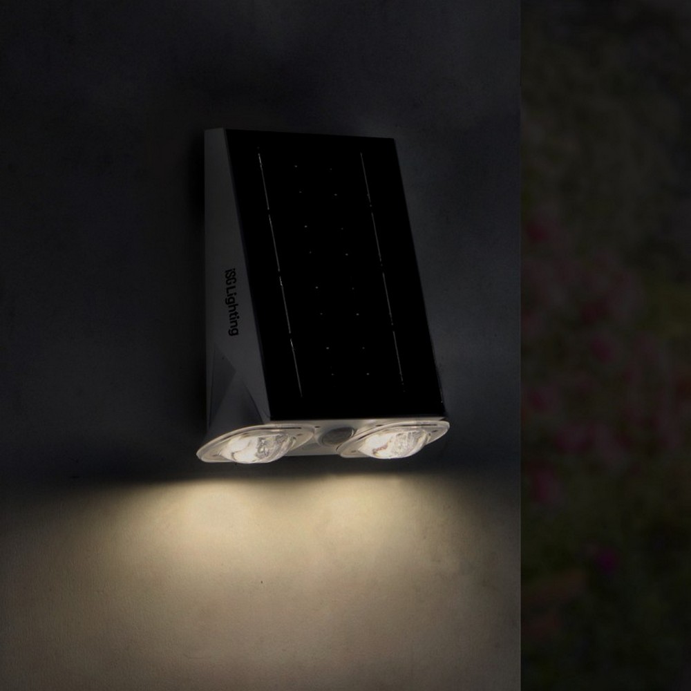 Applique Led da parete Eyes 1,3W Bianco con pannello solare IP44 Bianco neutro 4000K con sensore crepuscolare e di movimento iSG Lighting