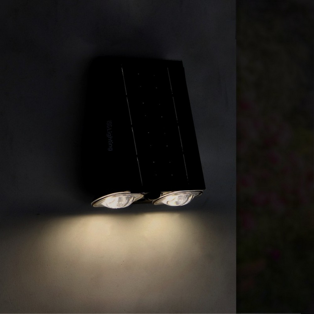 Applique Led da parete Eyes 1,3W Nero con pannello solare IP44 Bianco neutro 4000K con sensore crepuscolare e di movimento iSG Lighting