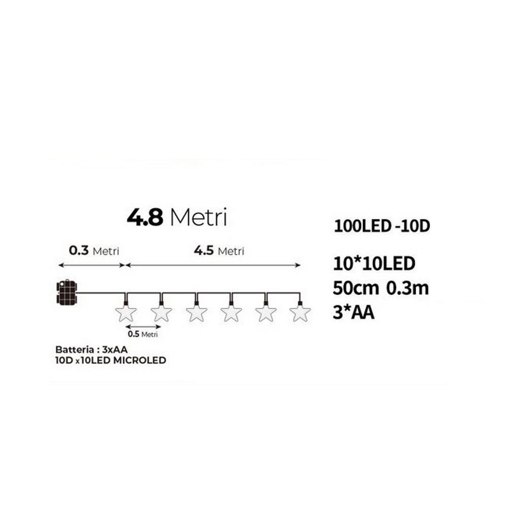 La catena è alimentata da 3 batterie AA (non incluse), con un pratico cavo luci da 30 cm che consente un posizionamento flessibile e discreto. Non essendo vincolata a prese elettriche, puoi spostarla e collocarla dove vuoi, anche in angoli della casa difficili da raggiungere con un’alimentazione tradizionale.