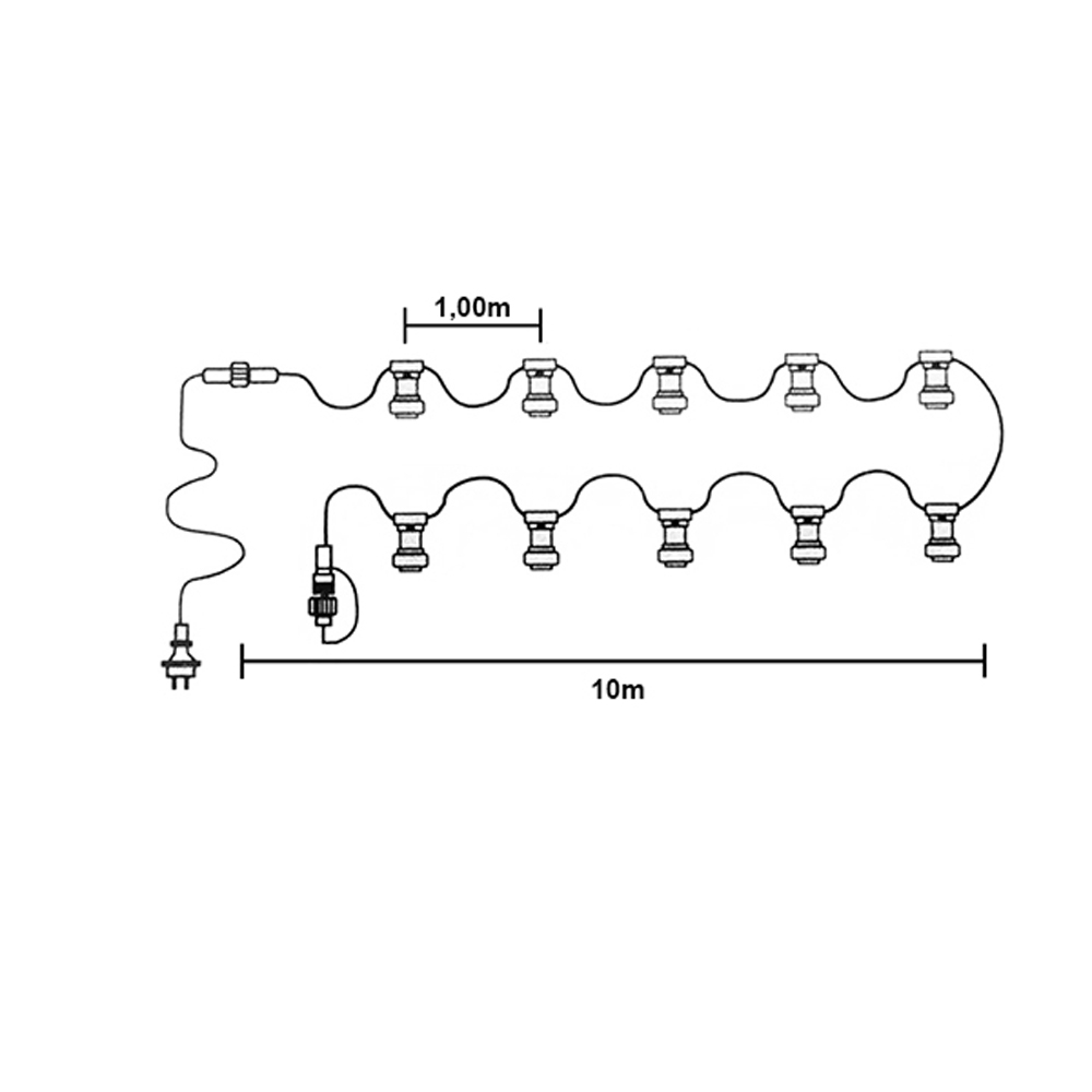 La catena di luci lineare da 10 metri con 10 lampadine E27 multicolore è la scelta perfetta per trasformare qualsiasi spazio esterno in un’ambientazione festosa e vivace. Le lampadine multicolore aggiungono un tocco di allegria e vivacità, perfetto per addobbare giardini, verande, depandance e altri spazi esterni durante le serate estive. Che tu stia organizzando una festa con gli amici o desideri creare un’atmosfera unica per una serata romantica, questa catena di luci sarà la tua compagna ideale.