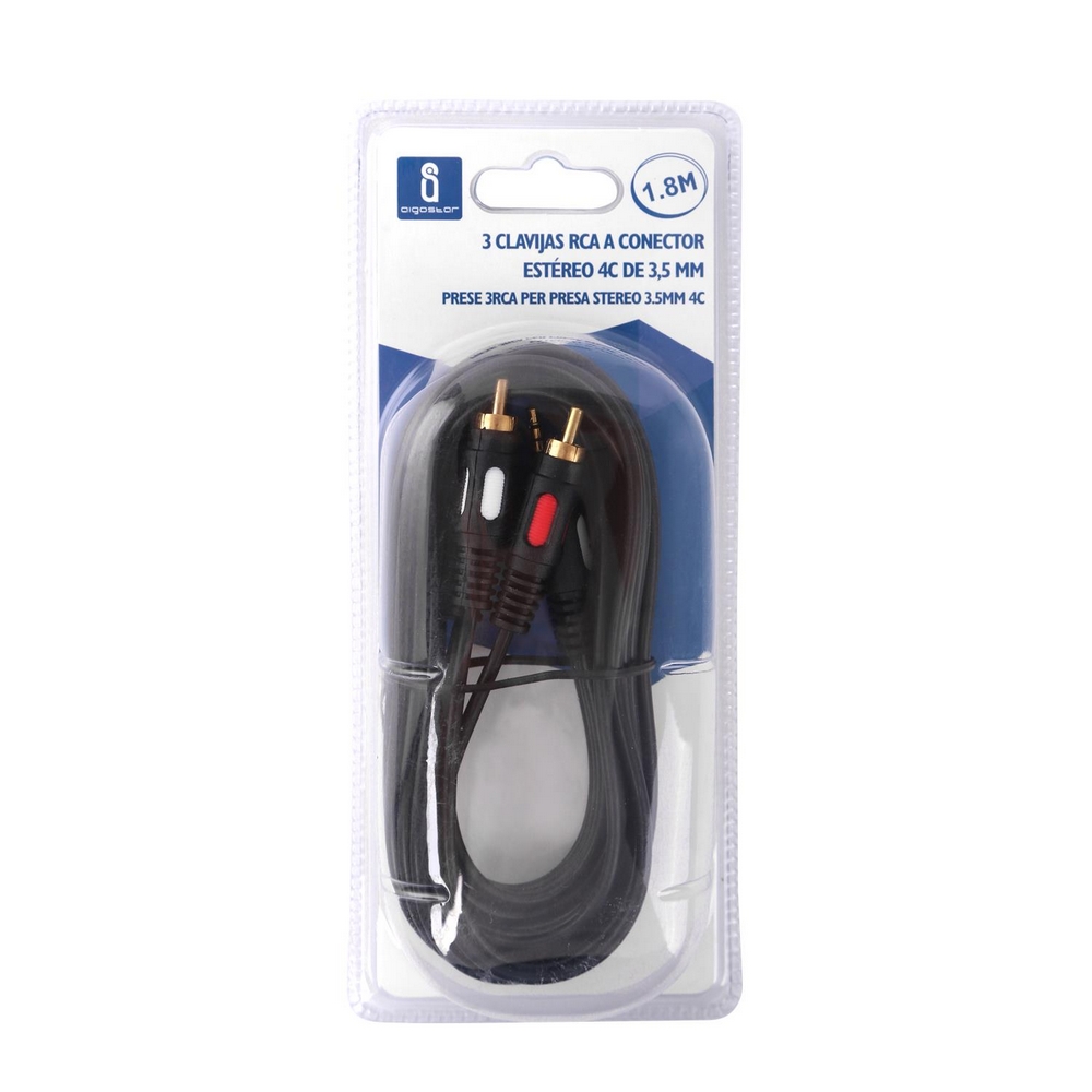 Il cavo Aux audio-video da 1 Jack da 3,5mm a 3 RCA bianco-rosso-giallo, lunghezza consente di collegare due dispositivi in modo da permettere all’audio e al video di essere riprodotti. Questo cavo di colore nero ha una lunghezza di 1,8 metri.