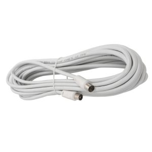 Il cavo per antenna TV coassiale RF con connettori maschio e femmina da 9,5 mm, dalla lunghezza di 8+ metri e di colore bianco, consente di veicolare il segnale dell’antenna ai vari televisori dell’abitazione.