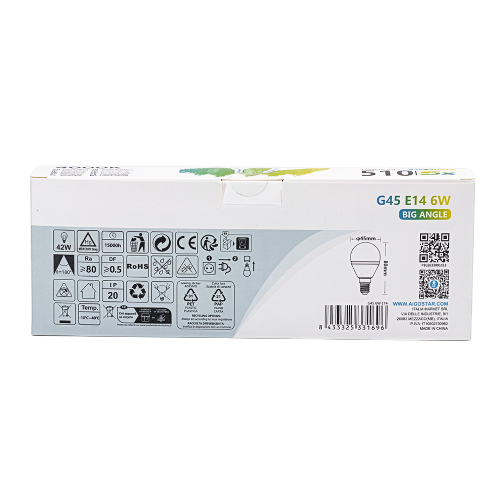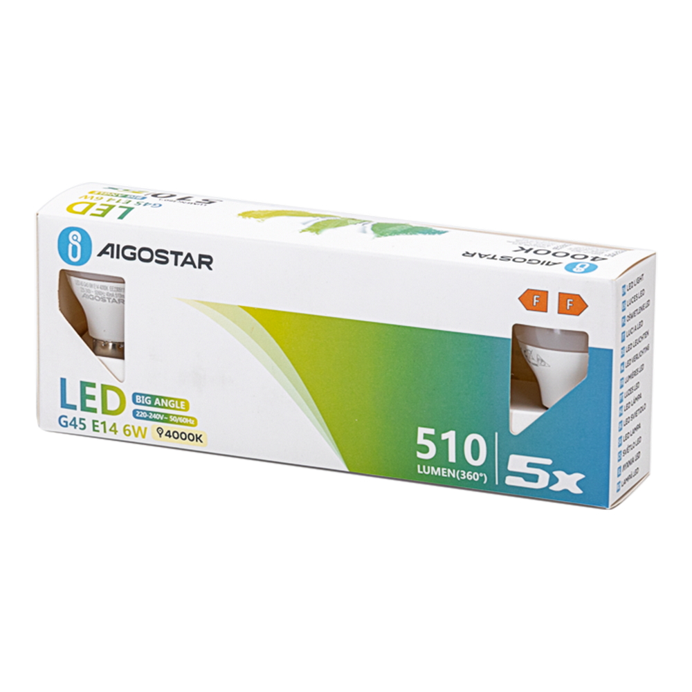 Confezione da 5 Lampadine Led E14 G45 6W Bianco neutro 4000K Aigostar
