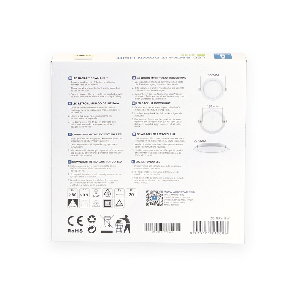 È un classico faretto da incasso con forma rotonda che, grazie alla sua potenza da 18 Watt, rappresenta un bilanciamento perfetto tra prestazioni e impatto energetico.