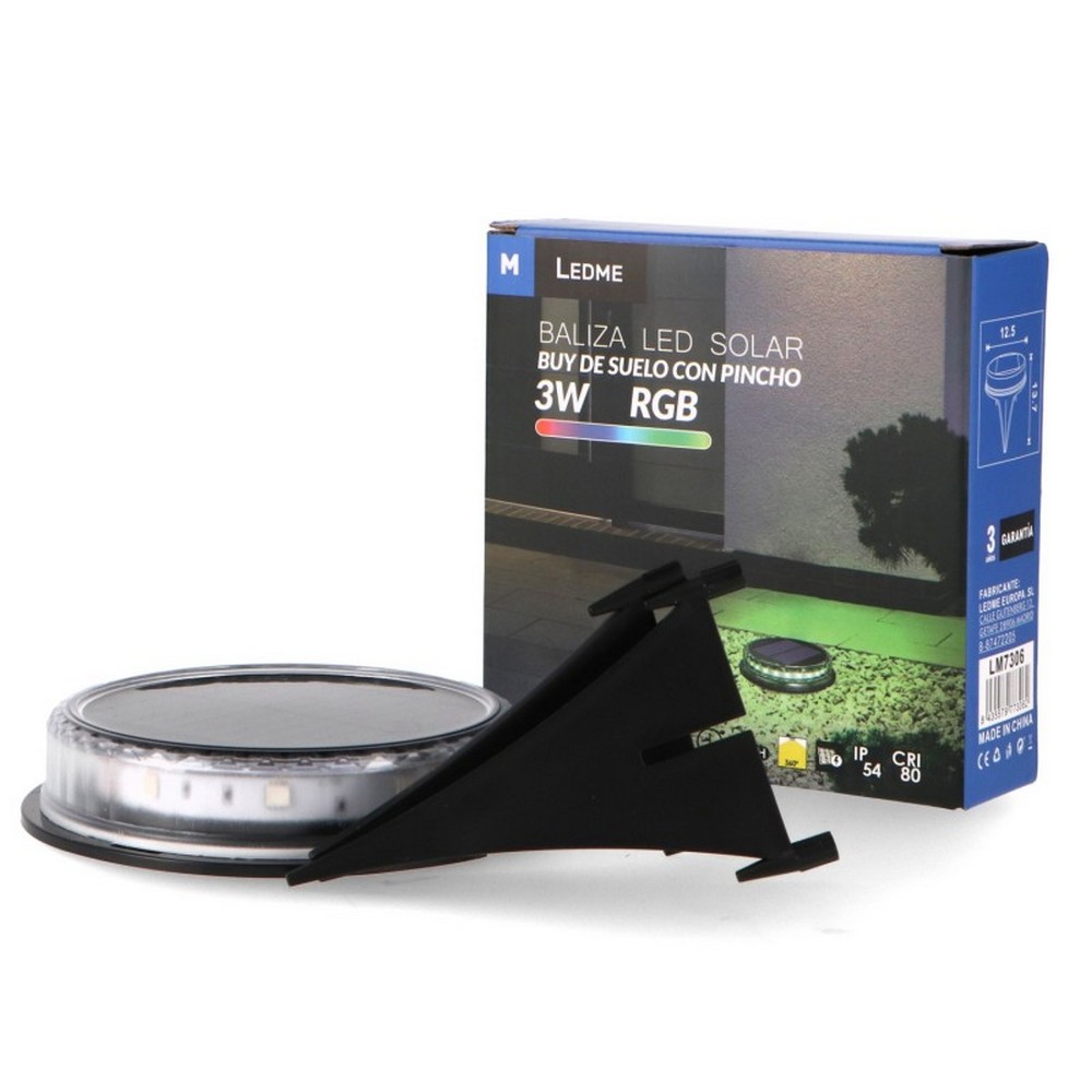 Faretto segnapassi Led 3W Nero con pannello solare IP54 RGB con sensore crepuscolare M LEDME