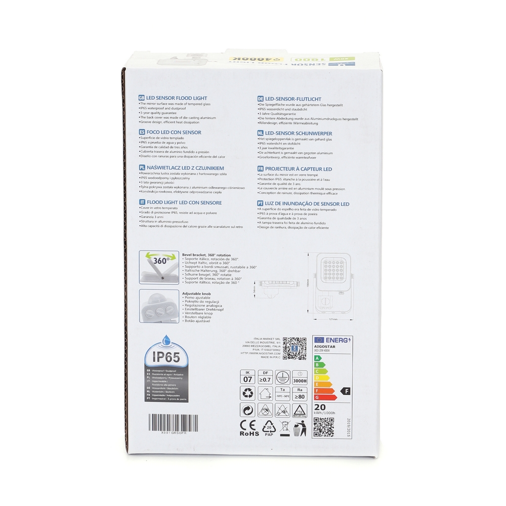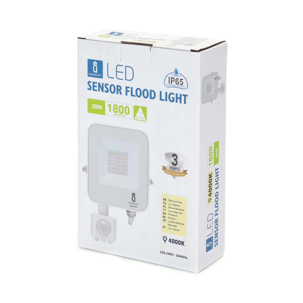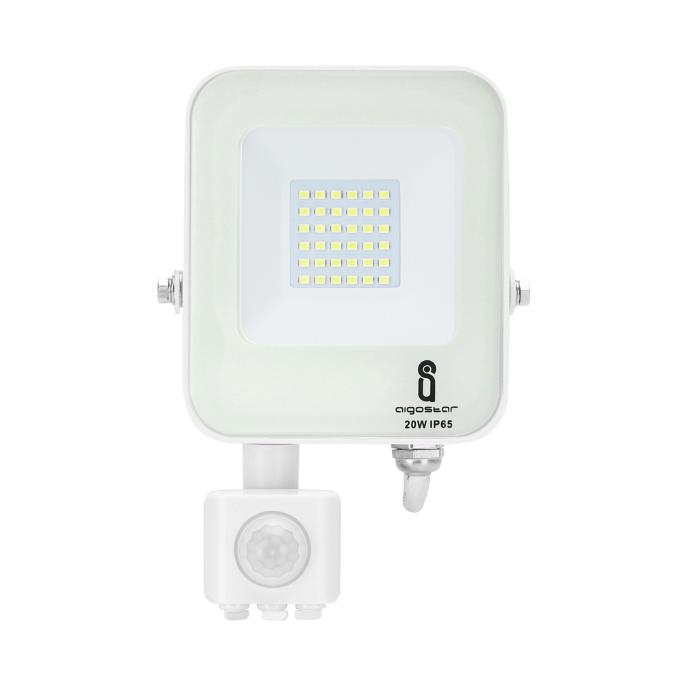 Faro proiettore Led 20W Bianco da esterno IP65 Bianco neutro 4000K con sensore crepuscolare e di movimento Aigostar