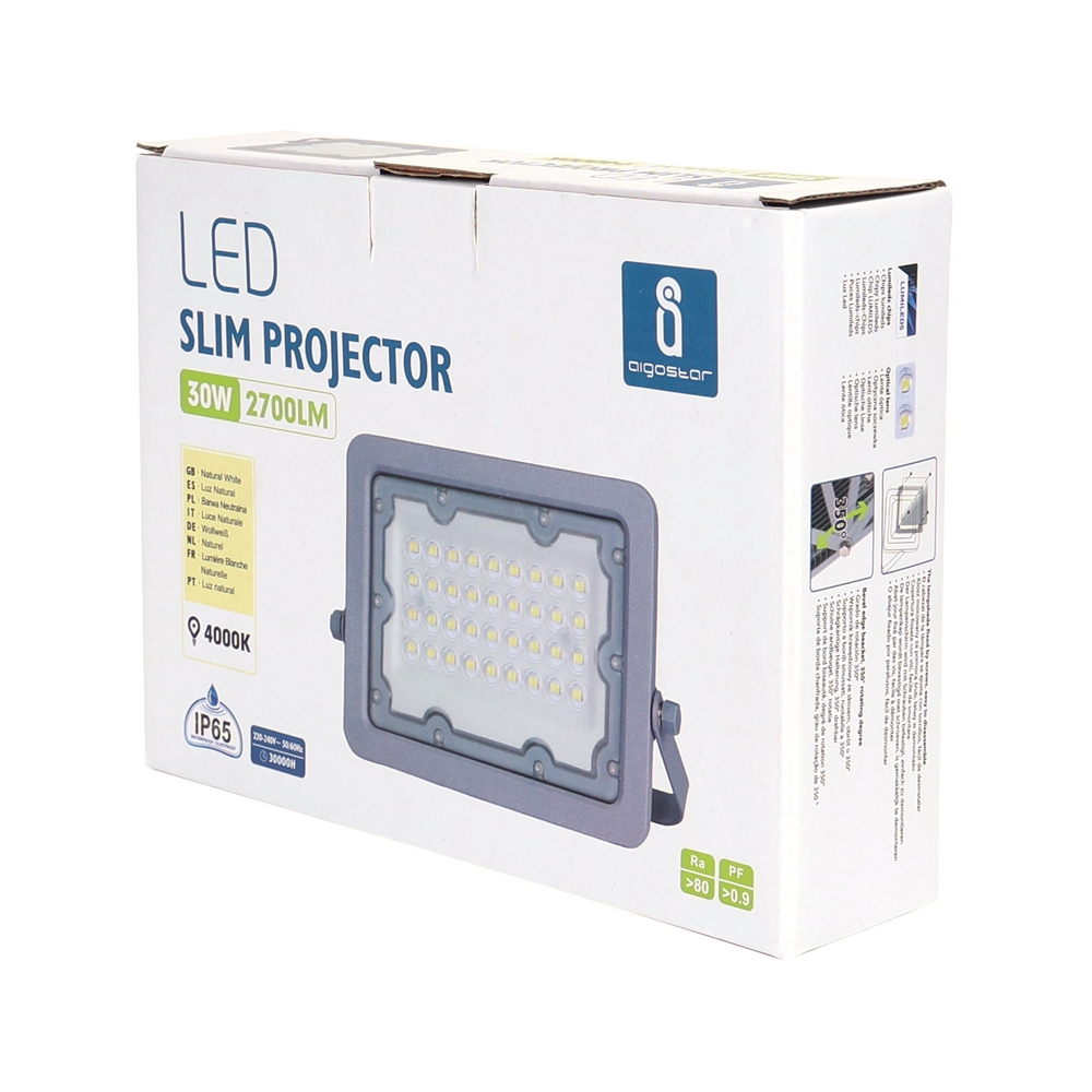 Faro proiettore Led 30W Grigio da esterno IP65 Bianco neutro 4000K Aigostar