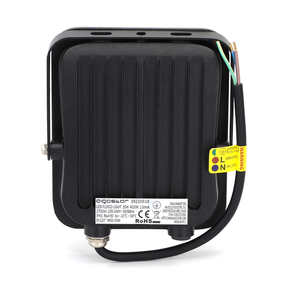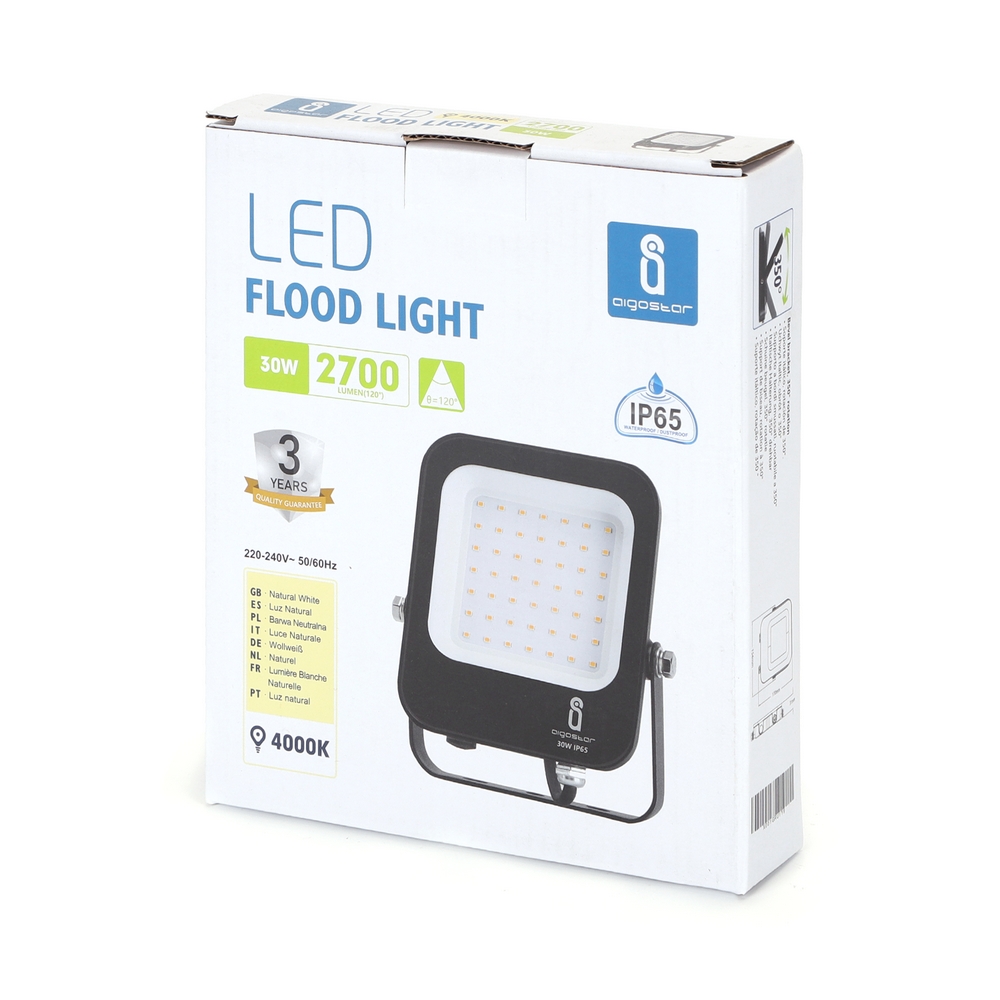 Faro proiettore Led 30W Nero da esterno IP65 Bianco neutro 4000K Aigostar