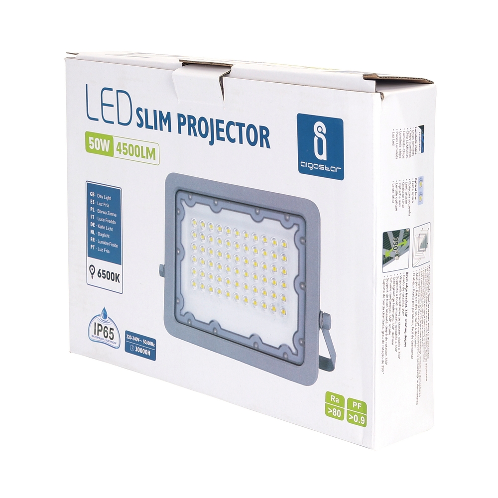 Faro proiettore Led 50W Grigio da esterno IP65 Bianco freddo 6500K Aigostar