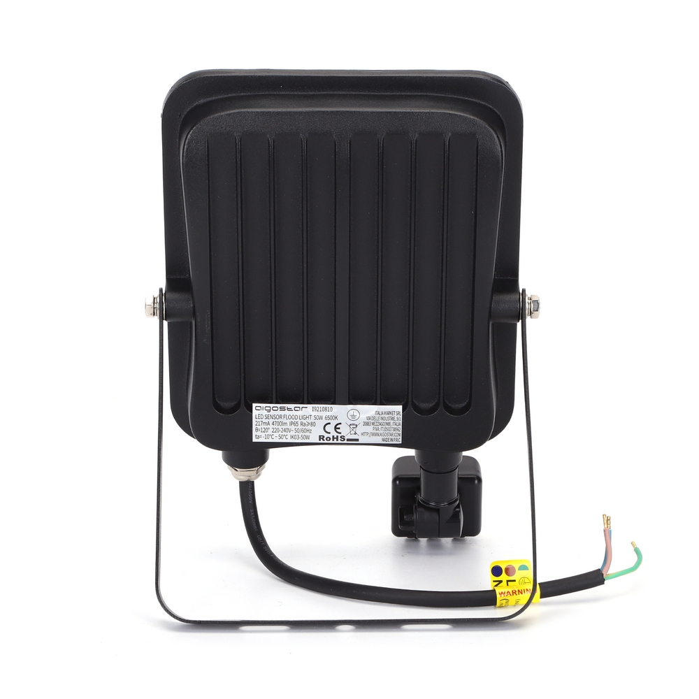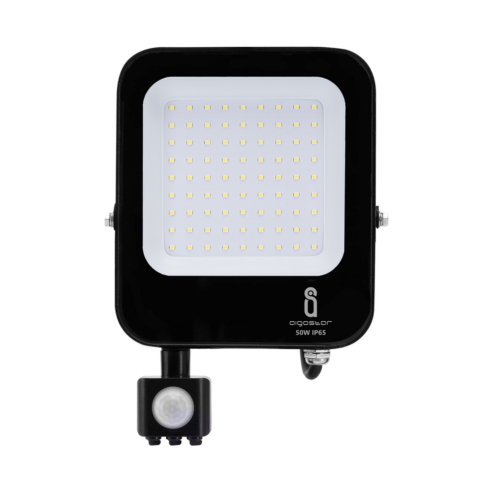 Faro proiettore Led 50W Nero da esterno IP65 Bianco freddo 6500K con sensore crepuscolare e di movimento Aigostar
