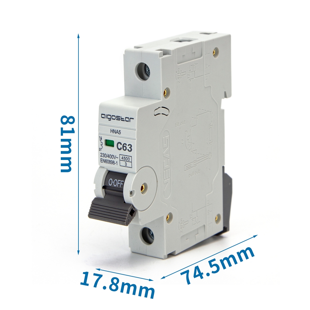L’interruttore magnetotermico automatico residenziale compatto di colore grigio a 1 polo è adatto per impianto elettrico domestico da 220V-380V ed è costituito da 1 modulo, corrente nominale 63A, in materiale plastico PA66 ignifugo resistente alle alte temperature (da -5° a +40°). Inoltre, dispone di tasti ergonomici che ne rendono semplice l’utilizzo e dispone di finestra per la visualizzazione del colore verde e rosso che ne indicano l’accensione e lo spegnimento. I morsetti sono in ferro zincato A3 antiossidante che evita la formazione della ruggine per un utilizzo duraturo ed efficace. Fermaglio con guida di 3,5 centimetri. Il prodotto non è per uso esterno, ma fabbricato come componente di un quadro elettrico.