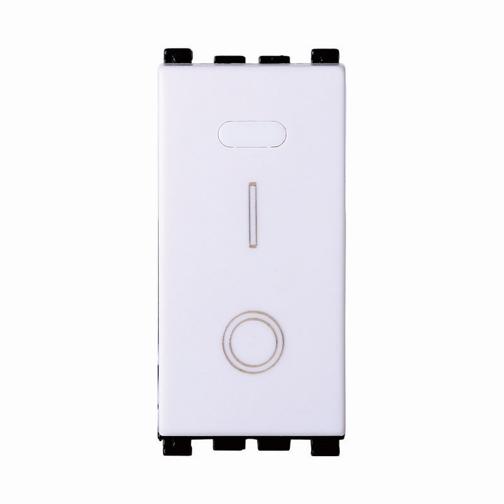 L’interruttore basculante 2 poli 1 modulo ad innesto 16A di colore bianco con comando basculante e predisposizione per indicatore a luce led serie Venus della marca Ettroit. Compatibile con la serie civile Vimar Arké.