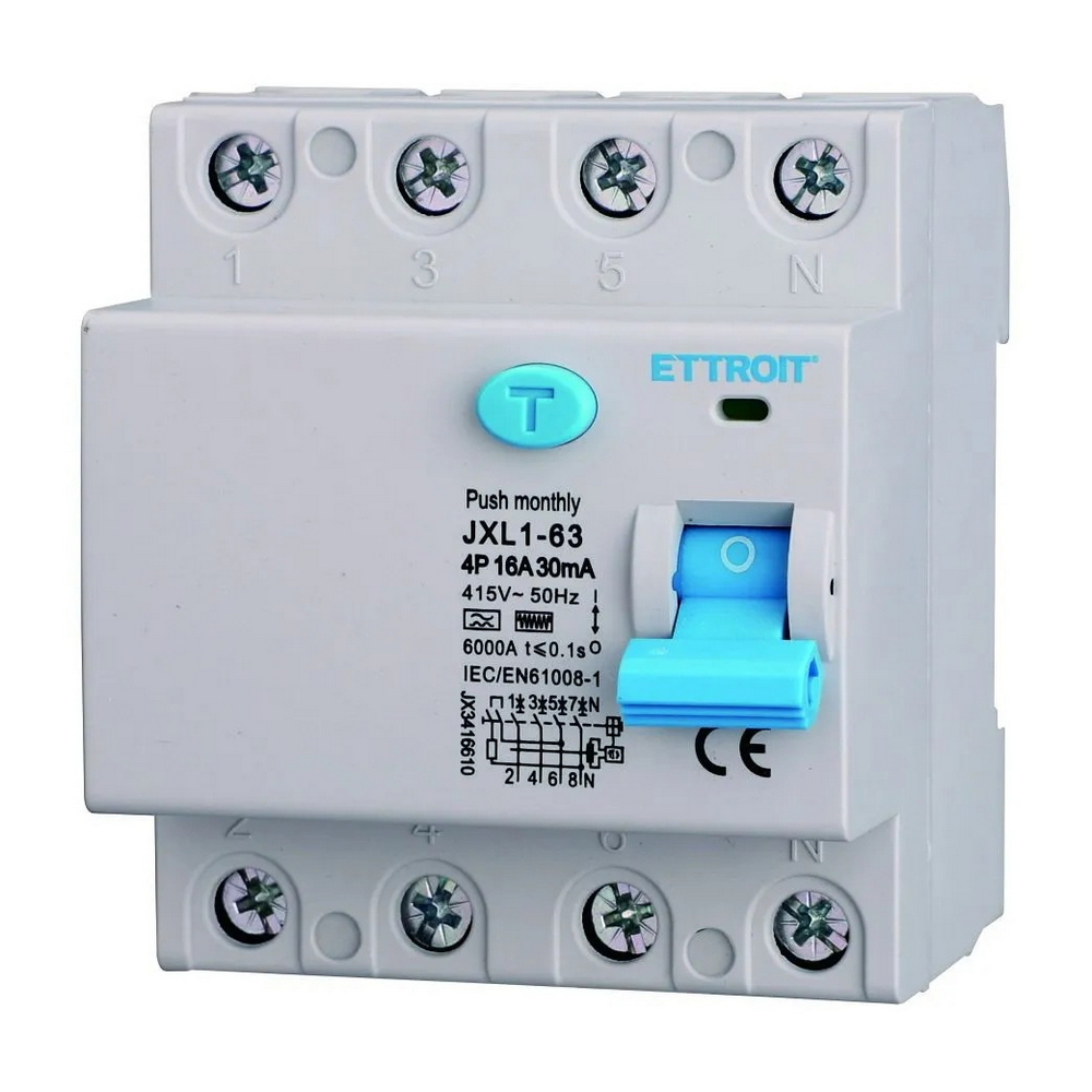 Interruttore differenziale puro Salvavita modulare 4P 16A 30mA 6KA 380V curva F Ettroit