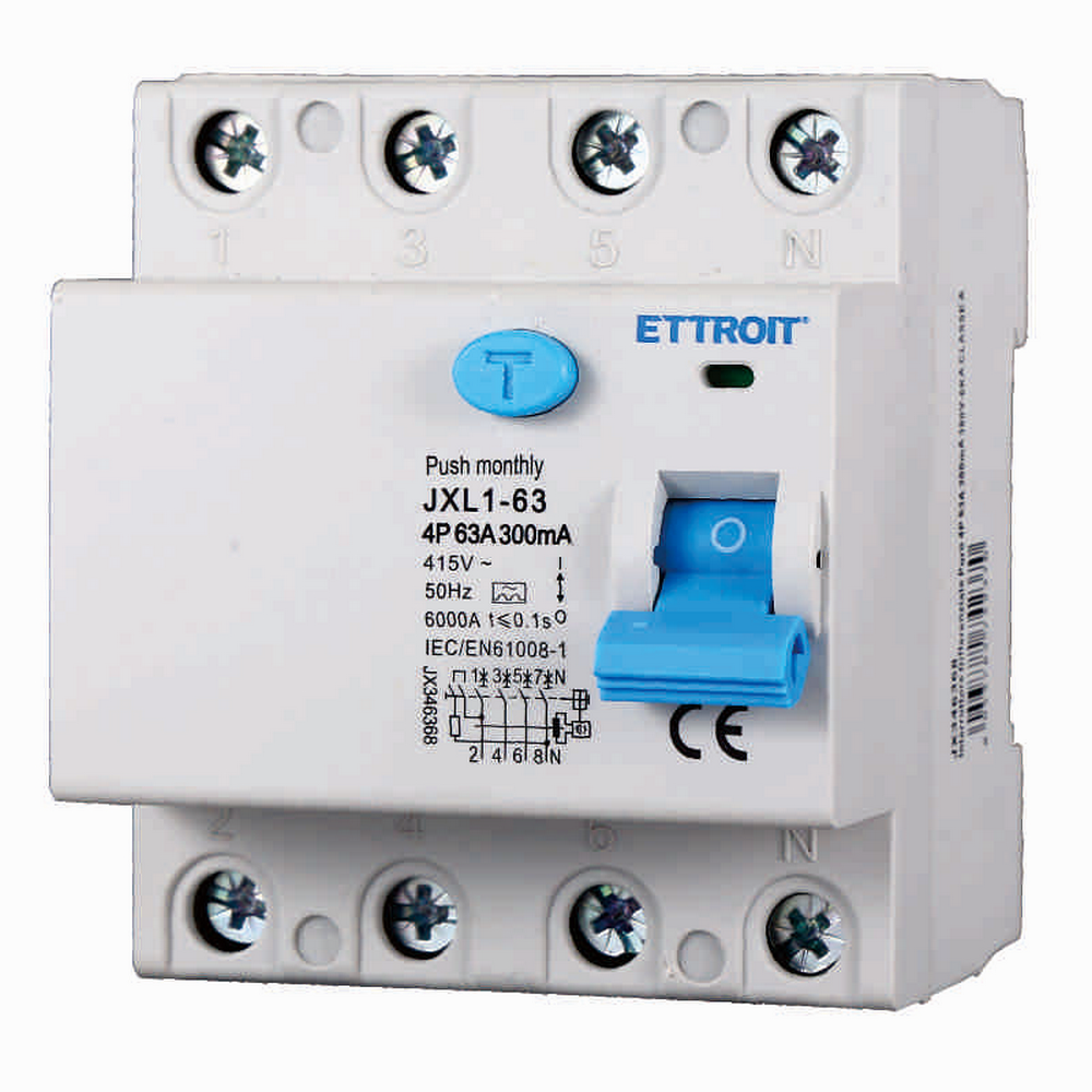 Questo dispositivo a 4 poli, con potenza nominale di 63A e un’elevata capacità di interruzione di 6kA, è progettato per funzionare in impianti trifase a 380V, assicurando massima stabilità e continuità di servizio. La sensibilità da 300mA lo rende particolarmente adatto per la protezione dai contatti indiretti e nelle zone a maggior rischio elettrico.