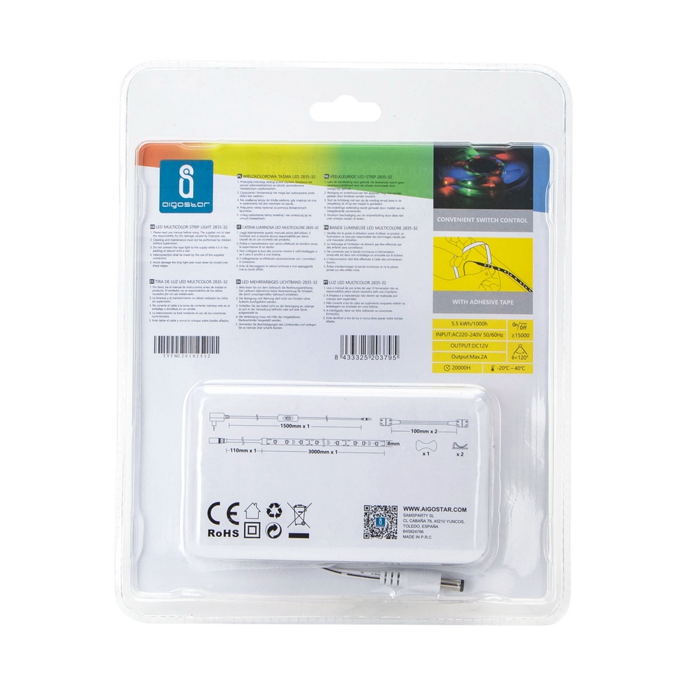 Kit Striscia Led 12V 5,5W SMD 2835 3 metri IP20 4 colori RGBY Aigostar