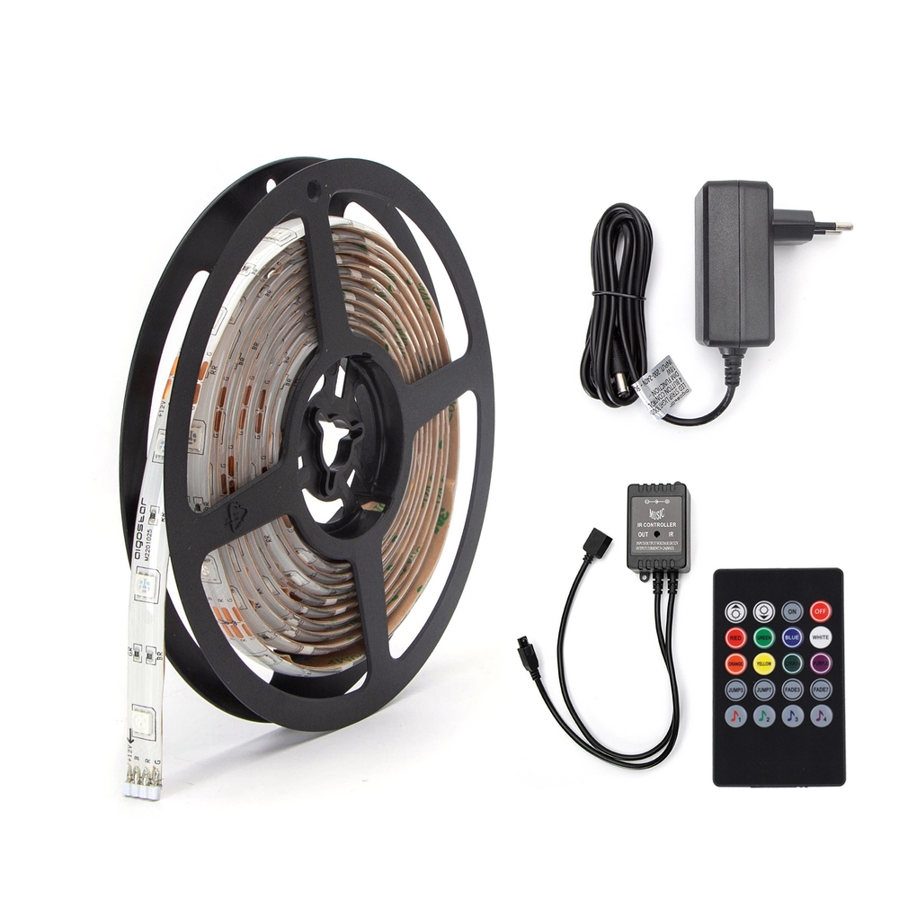 La striscia LED da 12V emette luce colorata (RGB) dalla potenza di 24W, il che rappresenta un bilanciamento perfetto tra prestazioni e impatto energetico. Questo modello è avvolto in una bobina di 3 metri ed è possibile tagliare la striscia ogni 10 cm in modo da ottenere la lunghezza desiderata. La striscia LED dispone di un telecomando che consente di scegliere tra 4 ritmi di musica (i led si accendono e si spengono a ritmo di musica) e regolare l’intensità per creare l’atmosfera desiderata. Inoltre, è molto facile da installare grazie al pratico adesivo 3M che si fissa su tutte le superfici. È adatta per spazi interni ed esterni perché totalmente protetta dalla polvere e dai getti d’acqua. Nella confezione, oltre alla striscia LED, è incluso anche un alimentatore e un telecomando.