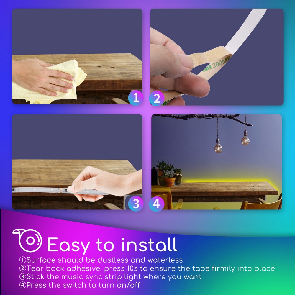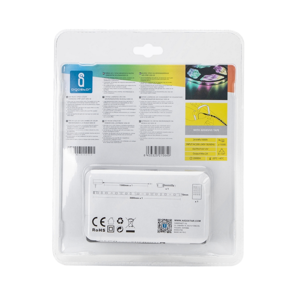 Kit Striscia Led ritmo musicale 12V 24W SMD 5050 3 metri IP65 con telecomando RGB Aigostar
