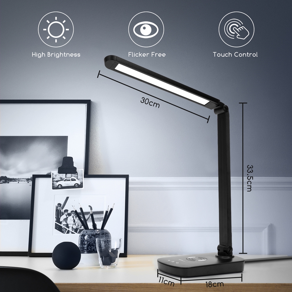 Lampada da tavolo Led Nera 5W con ricarica wireless e USB Dimmerabile con temperatura colore regolabile Aigostar