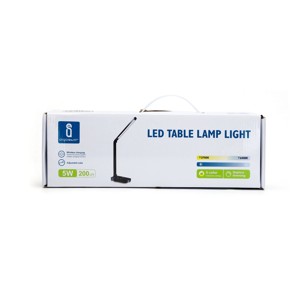 Questo modello, di colore nero, con i suoi 200 lumen e una potenza da 5 Watt, è ideale per concentrare il focus su una specifica area di lavoro e per ricaricare la batteria dello smartphone grazie alla funzione di ricarica wireless.