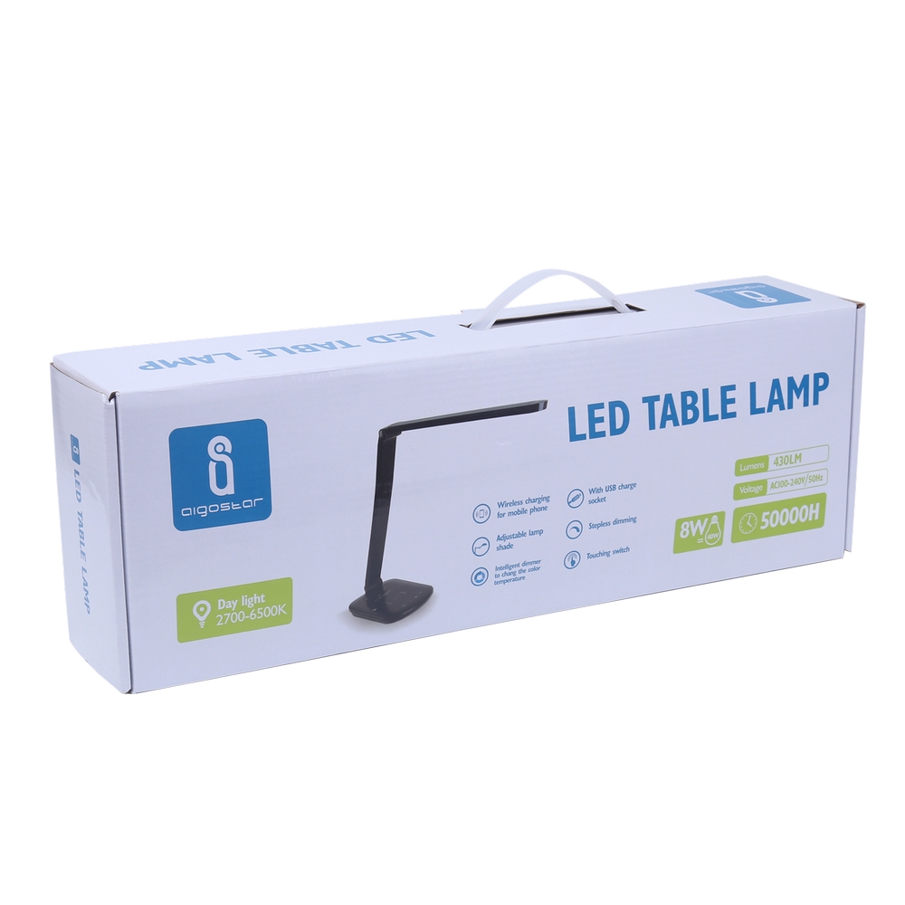 Lampada da tavolo Led Nera 8W con ricarica wireless e USB Dimmerabile con temperatura colore regolabile Aigostar