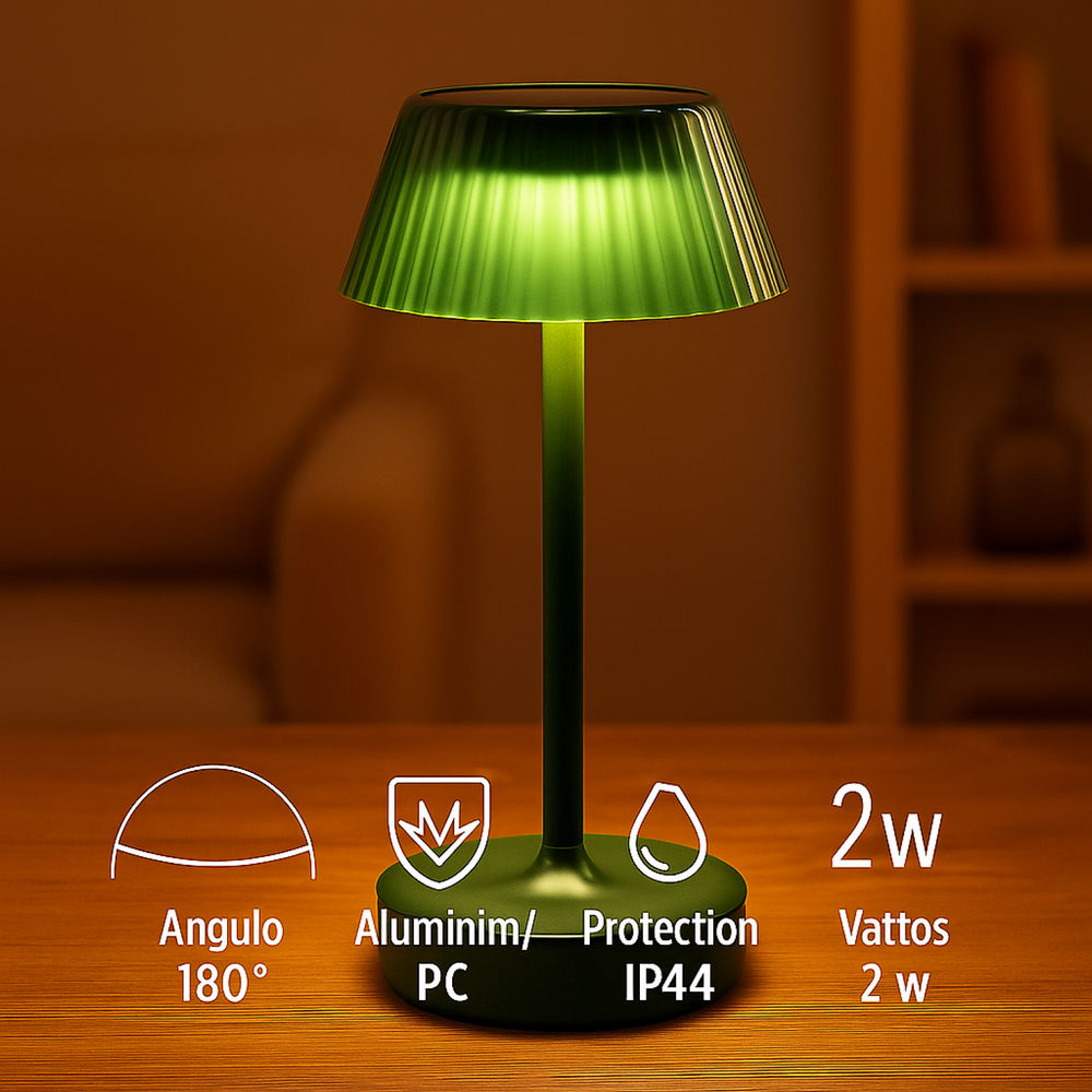 Dal colore vivace e dallo stile moderno, questa lampada da tavolo LED da 2W in verde unisce funzionalità e design elegante. La sua luce soffusa, regolabile in temperatura colore grazie alla tecnologia CCT, crea un’atmosfera calda e accogliente, perfetta per soggiorni, camere da letto o angoli lettura, aggiungendo un tocco di colore e stile a ogni ambiente.