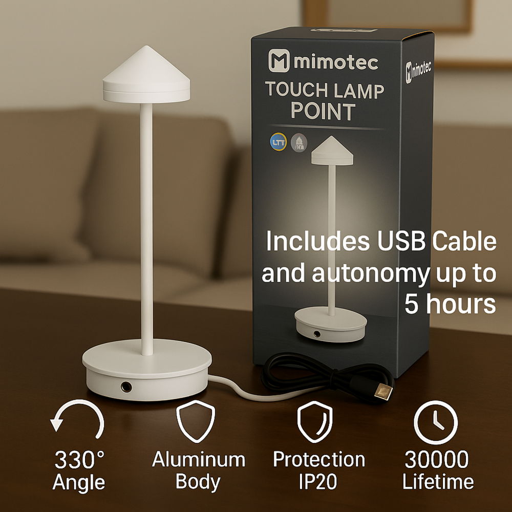 Lampada da tavolo Led touch Point 1W Bianca CCT temperatura colore regolabile portatile a batteria ricaricabile USB M mimotec