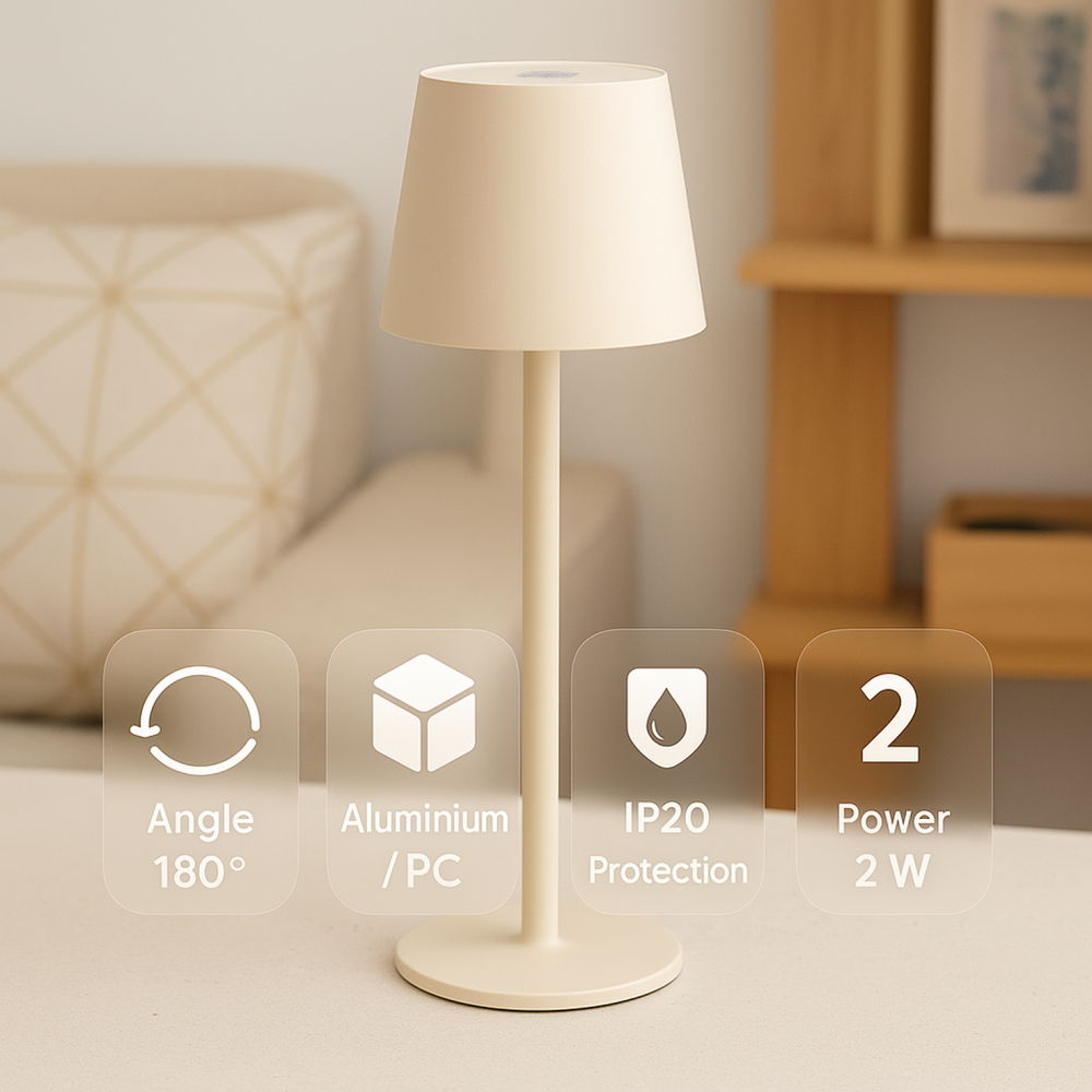 Lampada da tavolo Led touch Serena 2W Beige CCT temperatura colore regolabile portatile a batteria ricaricabile USB M mimotec