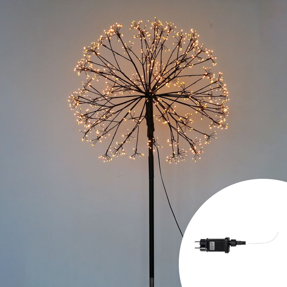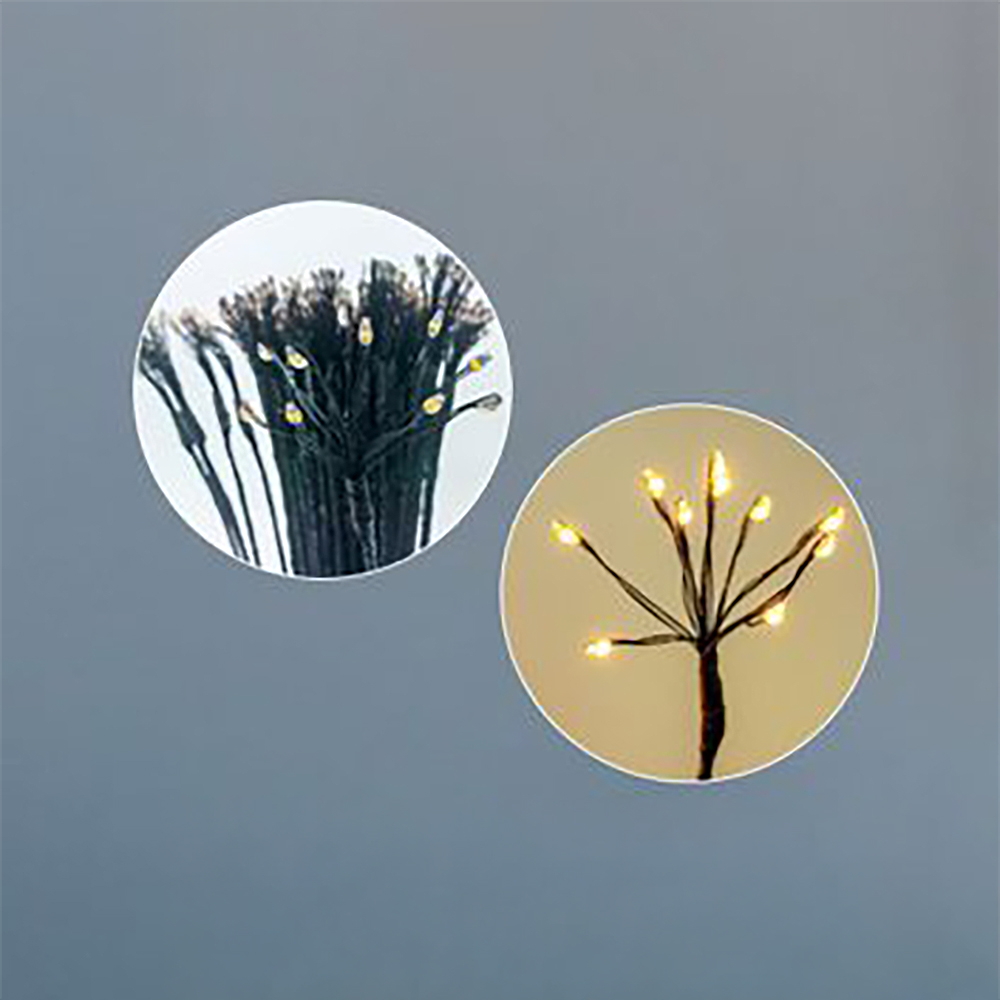 Alta 90 cm, questa lampada è composta da 500 microled a luce fissa bianco caldo, che si diramano su sottili ramificazioni metalliche creando un effetto visivo spettacolare, elegante e avvolgente. Il suo design simmetrico e la struttura slanciata la rendono un elemento decorativo raffinato, capace di fondere arte e tecnologia con estrema naturalezza.