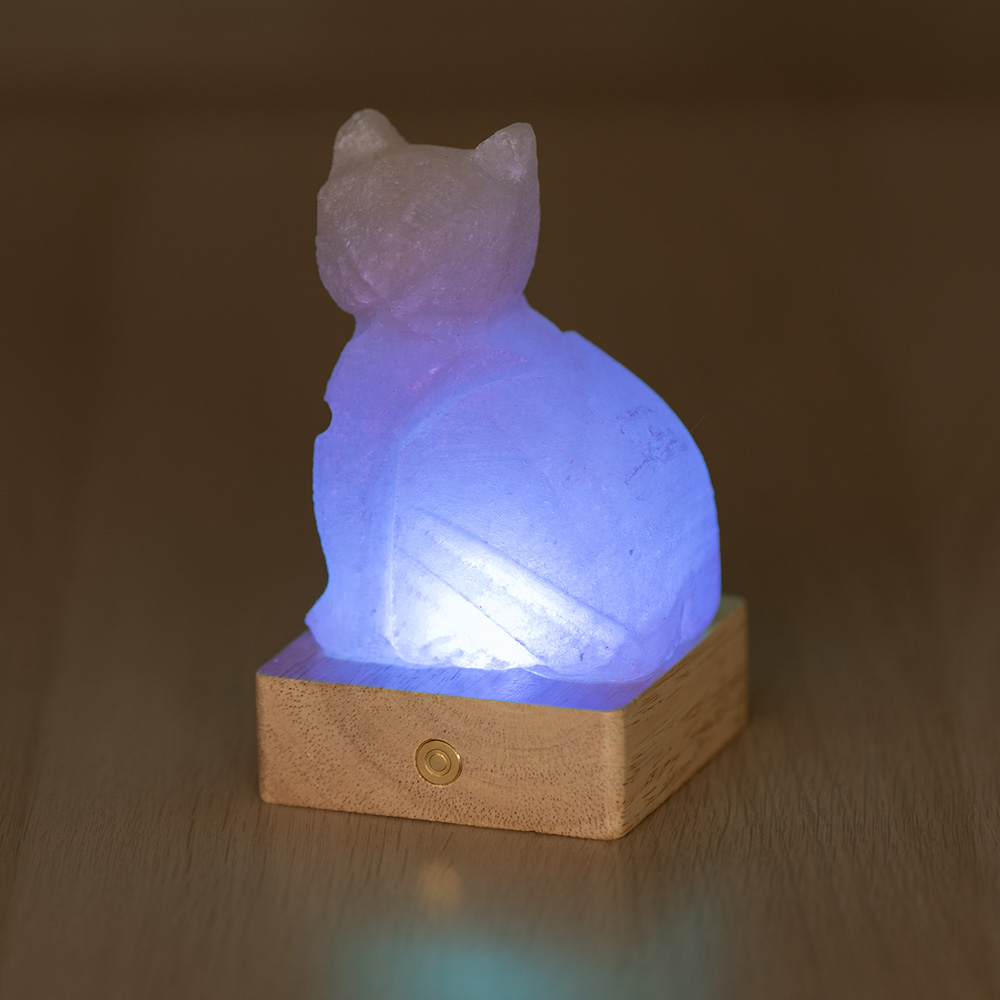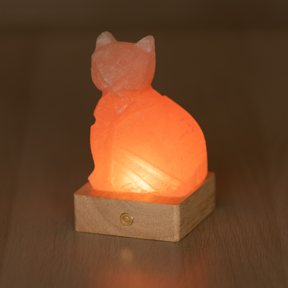 Questa Lampada di Sale Himalayano a forma di Gatto da 600-750 g unisce design decorativo e bellezza naturale. Realizzata in sale himalayano naturale con venature uniche, poggia su base quadrata in legno che ne garantisce stabilità ed eleganza. Perfetta come lampada da comodino, luce d’atmosfera per soggiorno, cameretta o angolo relax.