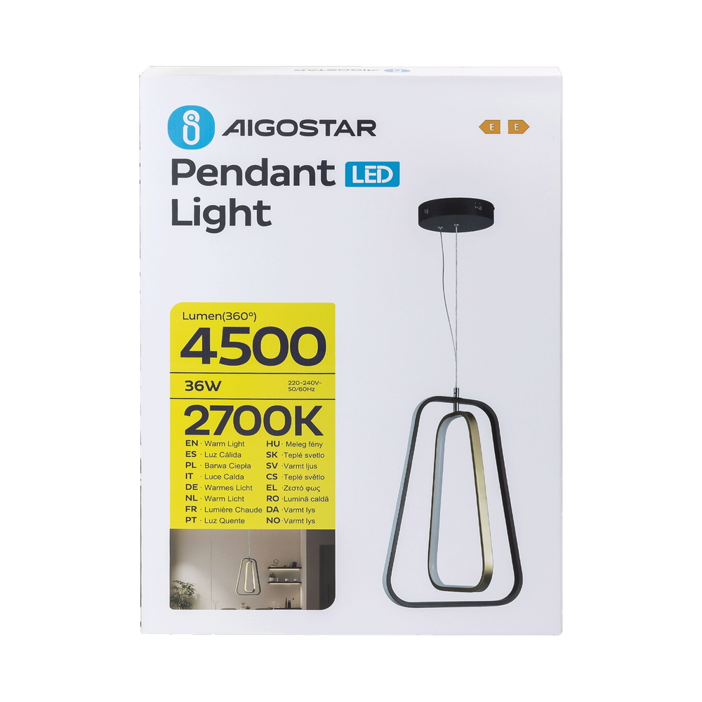 Lampadario da soffitto Drawn Nero 36W Bianco caldo 2700K Aigostar
