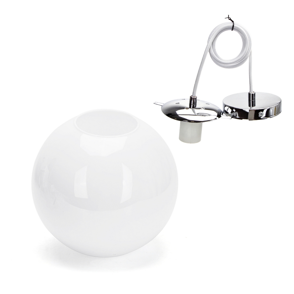 Questo modello è costruito in metallo, mentre la sfera è completamente di vetro e di colore bianco. Il design rende il lampadario ideale per dare un tocco di eleganza e semplicità all’ambiente.