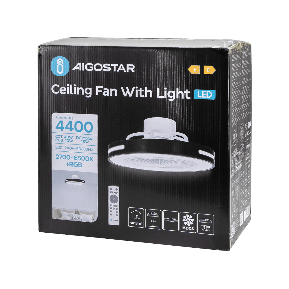 Lampadario Ventilatore da soffitto 55W CCT + RGB illuminazione Led regolabile con telecomando Aigostar