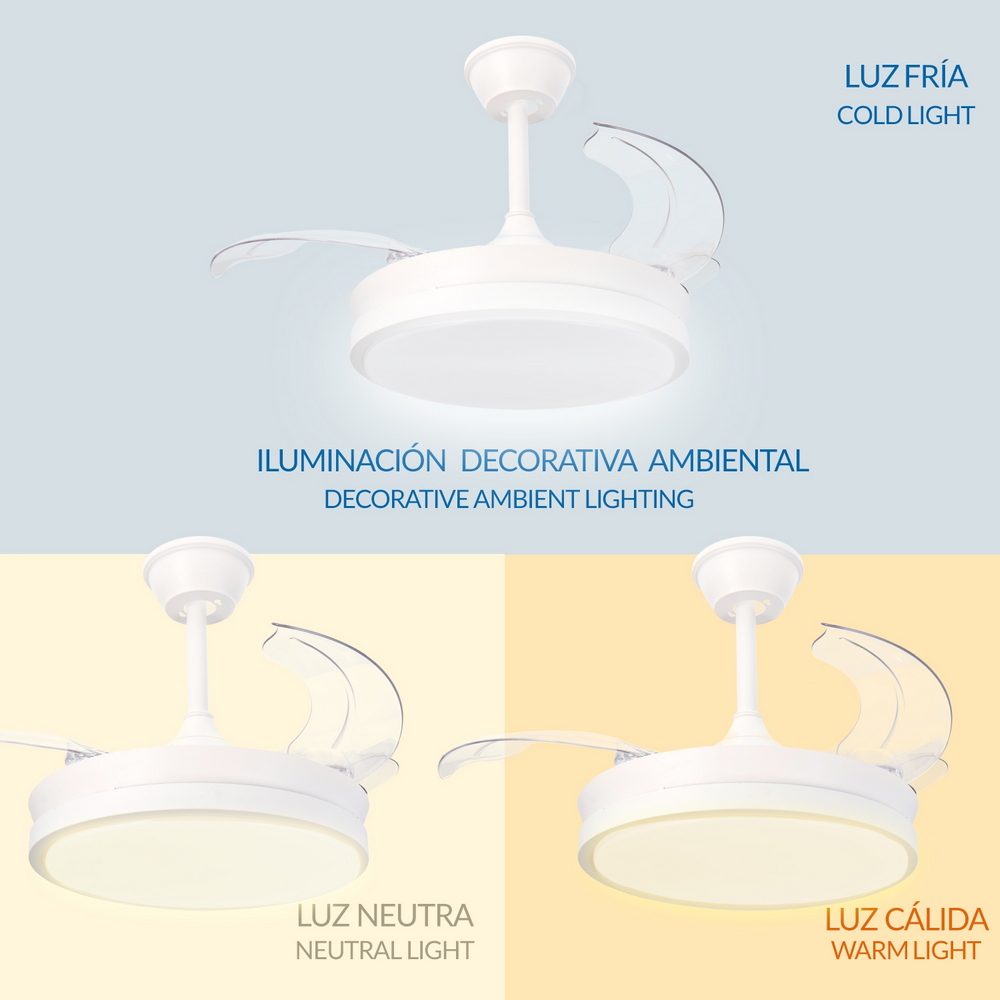Facile da gestire grazie al telecomando incluso, questo lampadario ventilatore rappresenta una soluzione intelligente per migliorare il benessere quotidiano con stile. White Thor è più di un semplice punto luce: è un vero alleato per il comfort domestico, progettato per rinfrescare e illuminare con efficienza e discrezione.