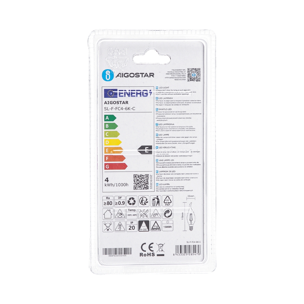 Lampadina Led a Filamento E14 CL35 a colpo di vento 4W Bianco freddo 6500K Aigostar
