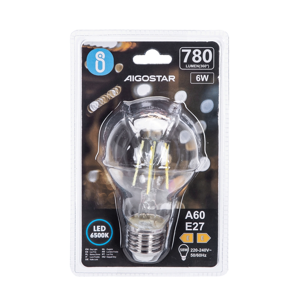 Lampadina Led a Filamento E27 A60 a bulbo 6W Bianco freddo 6500K Aigostar