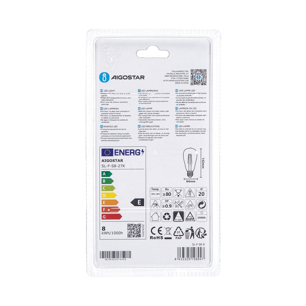 Lampadina Led a Filamento E27 ST64 8W Bianco caldo 2700K Aigostar