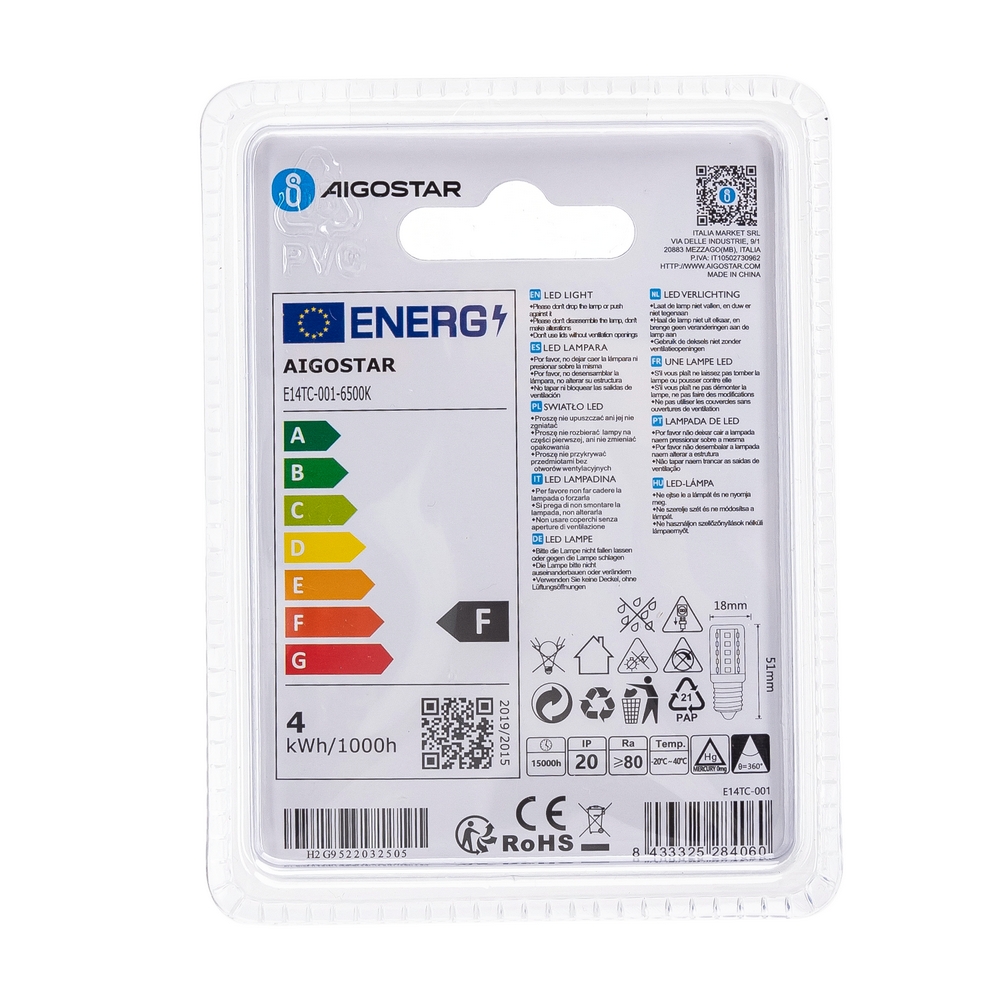 Lampadina Led da frigorifero E14 T18 3,5W Bianco freddo 6500K Aigostar