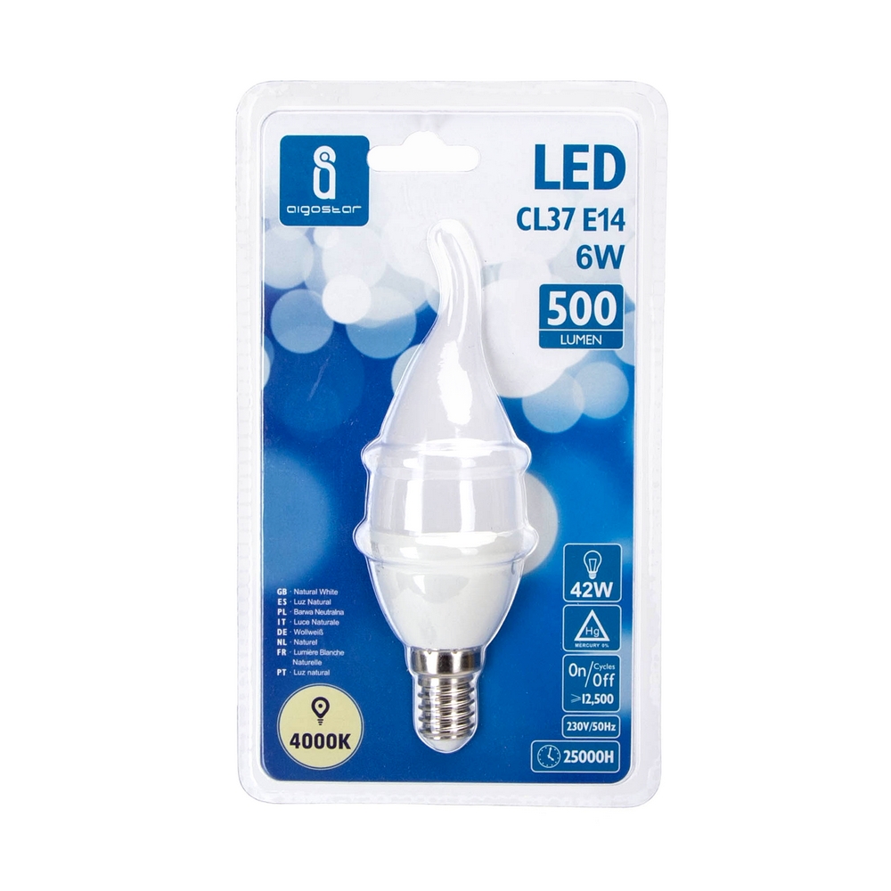 Lampadina Led E14 CL37 a colpo di vento 6W Bianco neutro 4000K Aigostar