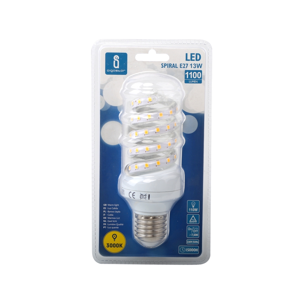 La lampadina a Led con attacco E27 comunemente detto “attacco grande” a tubo a spirale 13W, corrispondente ad una tradizionale lampadina da 77W, è il bilanciamento perfetto tra prestazioni e impatto energetico.
