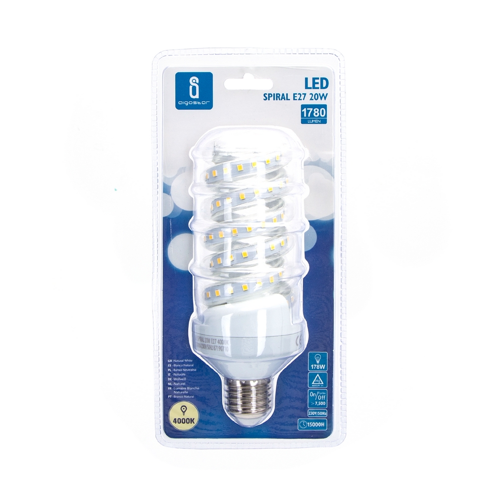 Lampadina Led E27 a tubo a spirale 20W Bianco neutro 4000K Aigostar