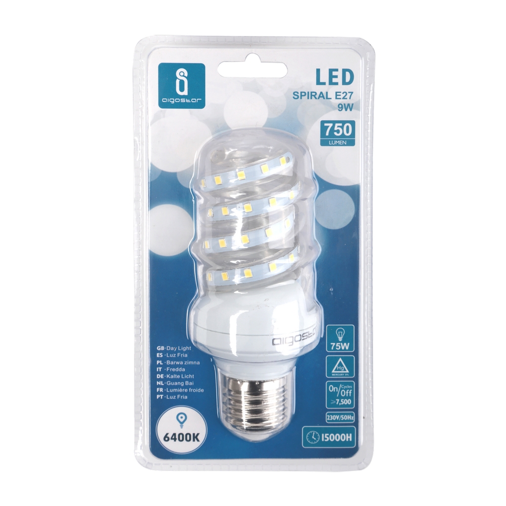 Lampadina Led E27 a tubo a spirale 9W Bianco freddo 6400K Aigostar