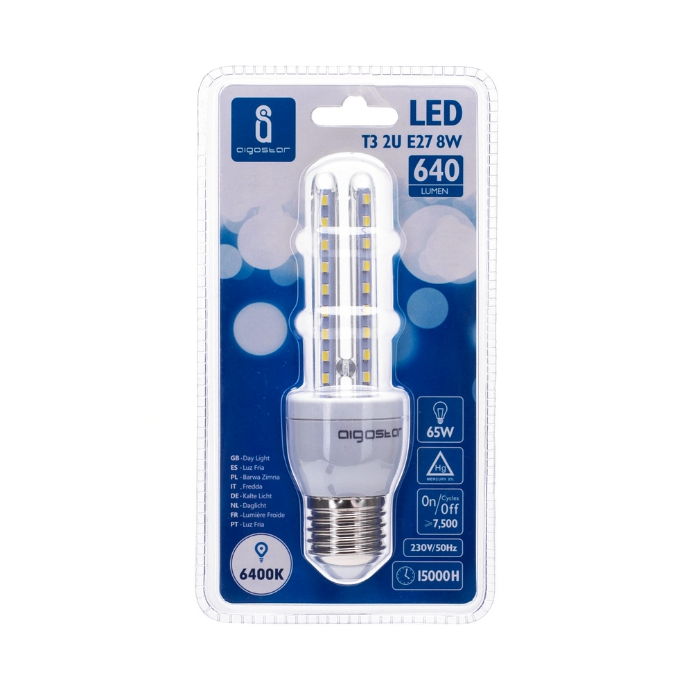 Lampadina Led E27 a tubo a U 8W Bianco freddo 6400K Aigostar