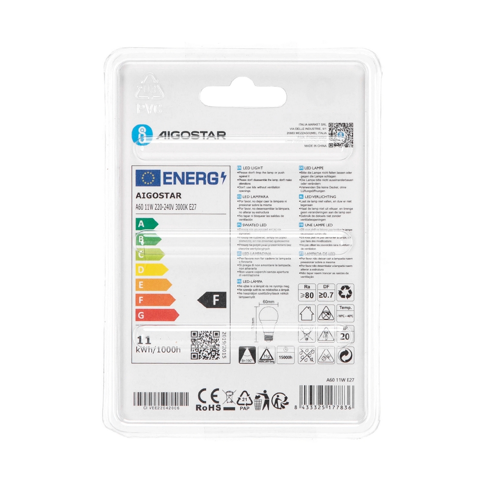 Lampadina Led E27 A60 a bulbo 11W Bianco caldo 3000K Aigostar