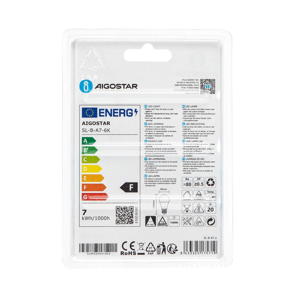 Lampadina Led E27 A60 a bulbo 7W Bianco freddo 6400K Aigostar
