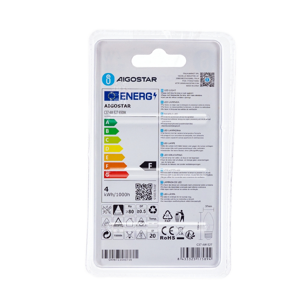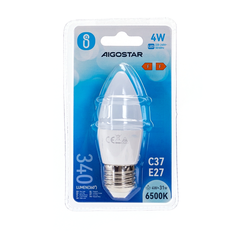 Lampadina Led E27 C35 a candela 4W Bianco freddo 6400K Aigostar