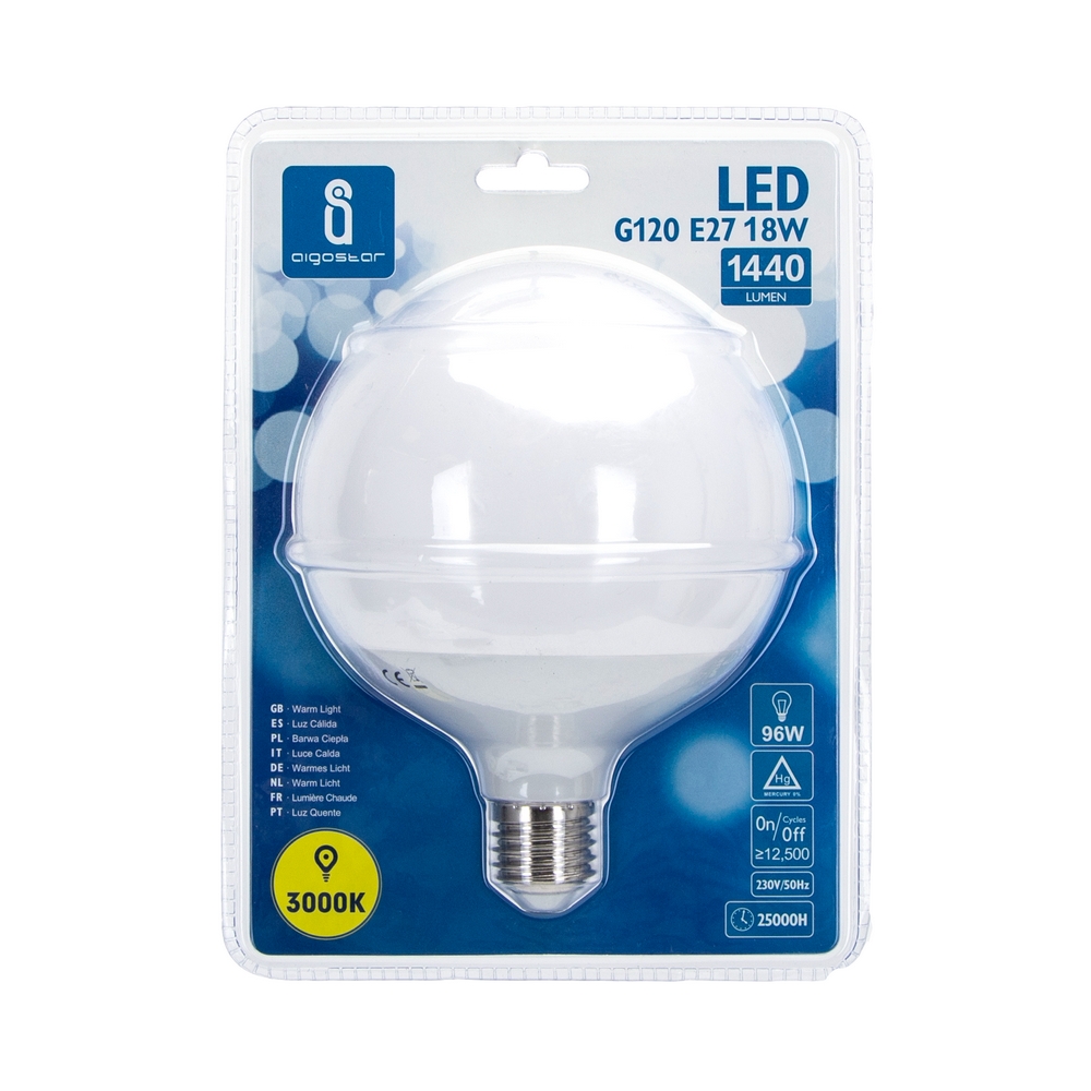 Lampadina Led E27 G120 a globo 18W Bianco caldo 3000K Aigostar