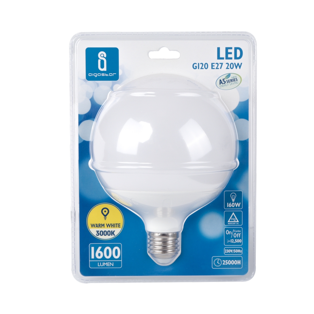 Lampadina Led E27 G120 a globo 20W Bianco caldo 3000K Aigostar