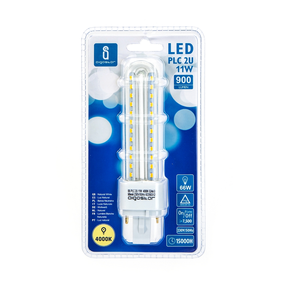 La lampadina a Led con attacco G24d-3 (2 pin) PL-C 11W, corrispondente ad una tradizionale lampadina da 66W, è il bilanciamento perfetto tra prestazioni e impatto energetico.